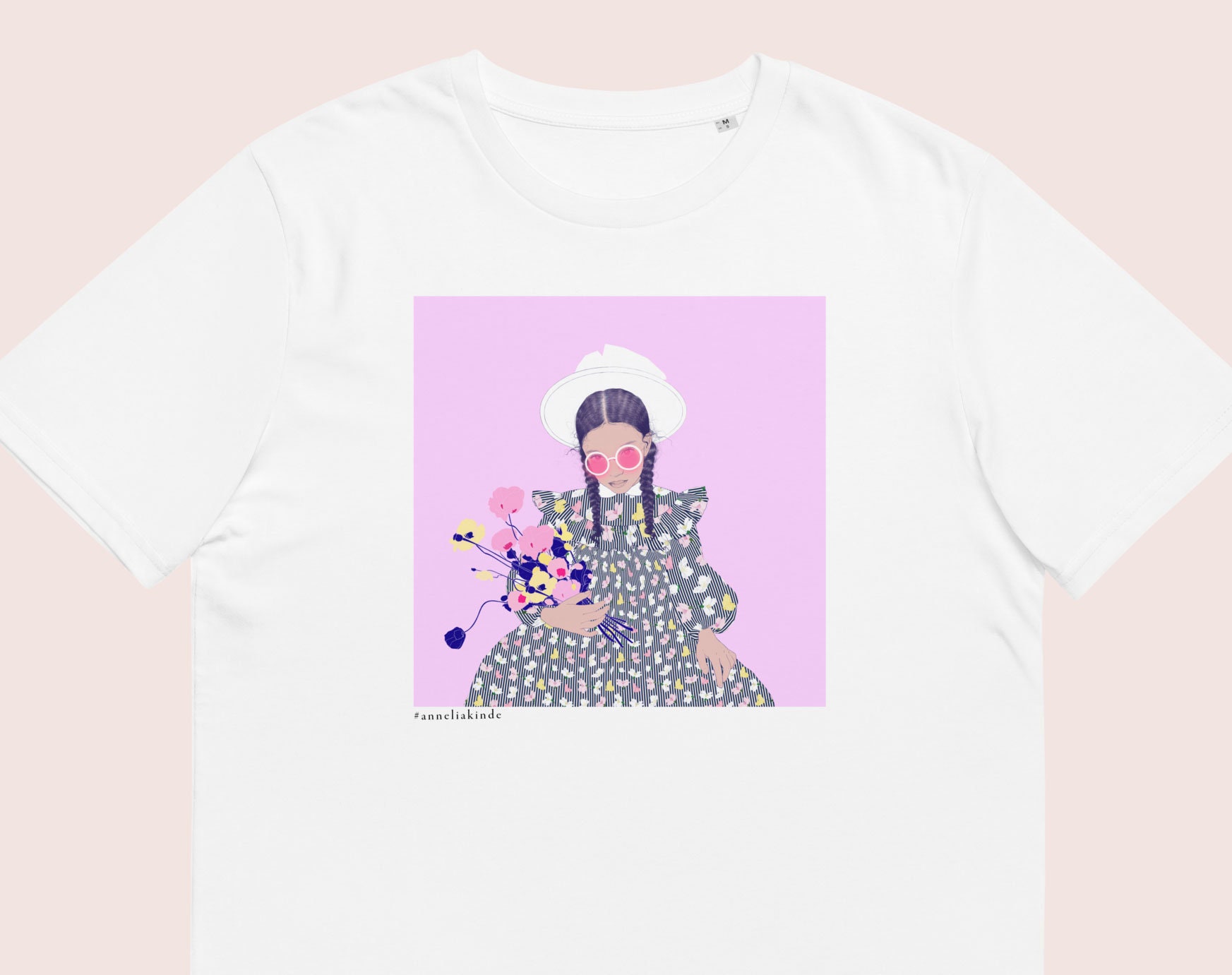 This unisex white t-shirt boasts a charming Victorian-inspired design, featuring a little girl in a period dress. The intricate artwork is carefully crafted to showcase the girls' braids and elegant flowery dresses, creating a vintage vibe that is sure to turn heads. Shop now to add this timeless piece to your collection.